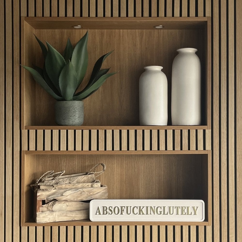 Elevate your home decor with our 'Absof*ckinglutely' Cream and Gold Sign. This wooden sign features 3D gold foil lettering on a luxurious cream background. Perfect for adding a touch of playfulness to any space.