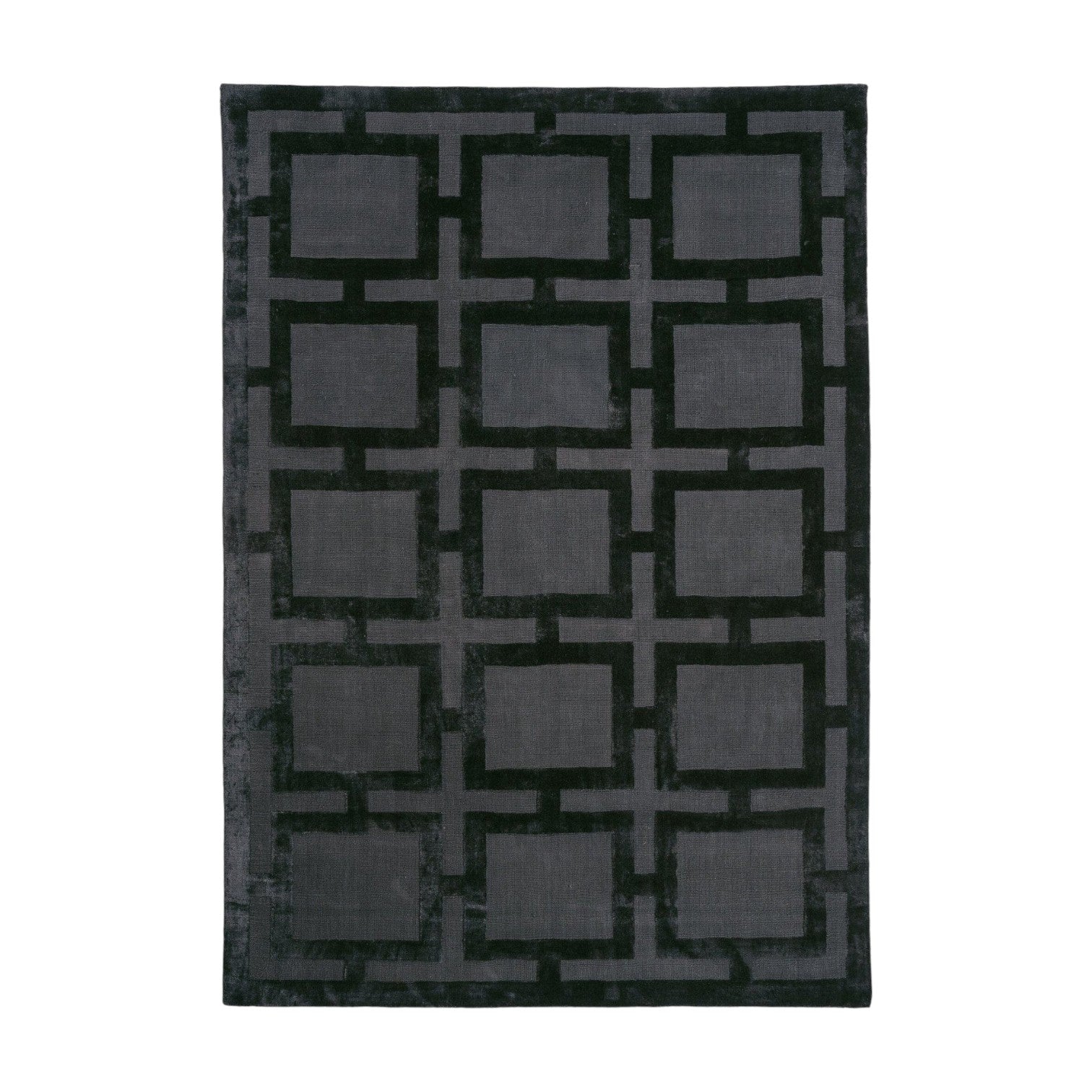 Bring bold style to your space with this Black Geometric Grid Rug. Featuring a hand-woven cut and loop pile, its super soft, dense viscose adds a touch of dimensional shimmer and depth. The deep black background pops against the graphic geometric pattern, making it a playful yet sophisticated statement piece for any room. Perfect to brighten up floors and spark conversation!
