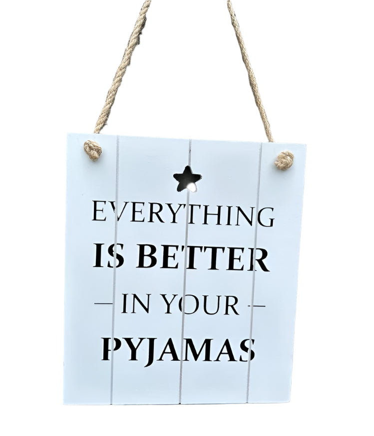 'Everything Is Better In Your Pyjamas' Wooden Hanging Sign