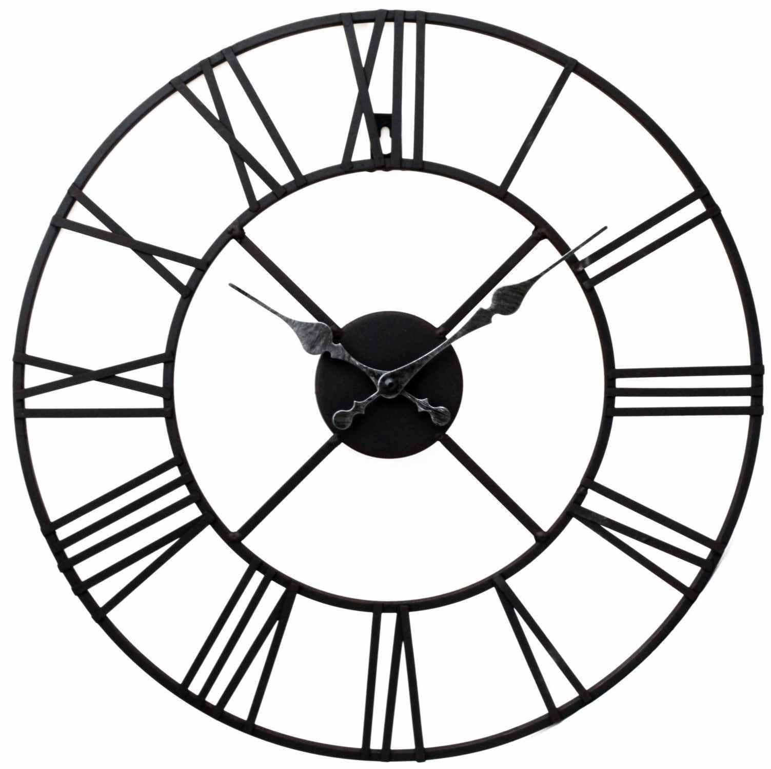 An attractive black large metal clock with a simple design. It incorporates Roman numerals with vintage clock hands. It requires 1 x AA Battery. It is a contemporary design which would complement all types of decoration and this item would make a lovely gift. It's diameter is 60cm and its depth is 3cm.
